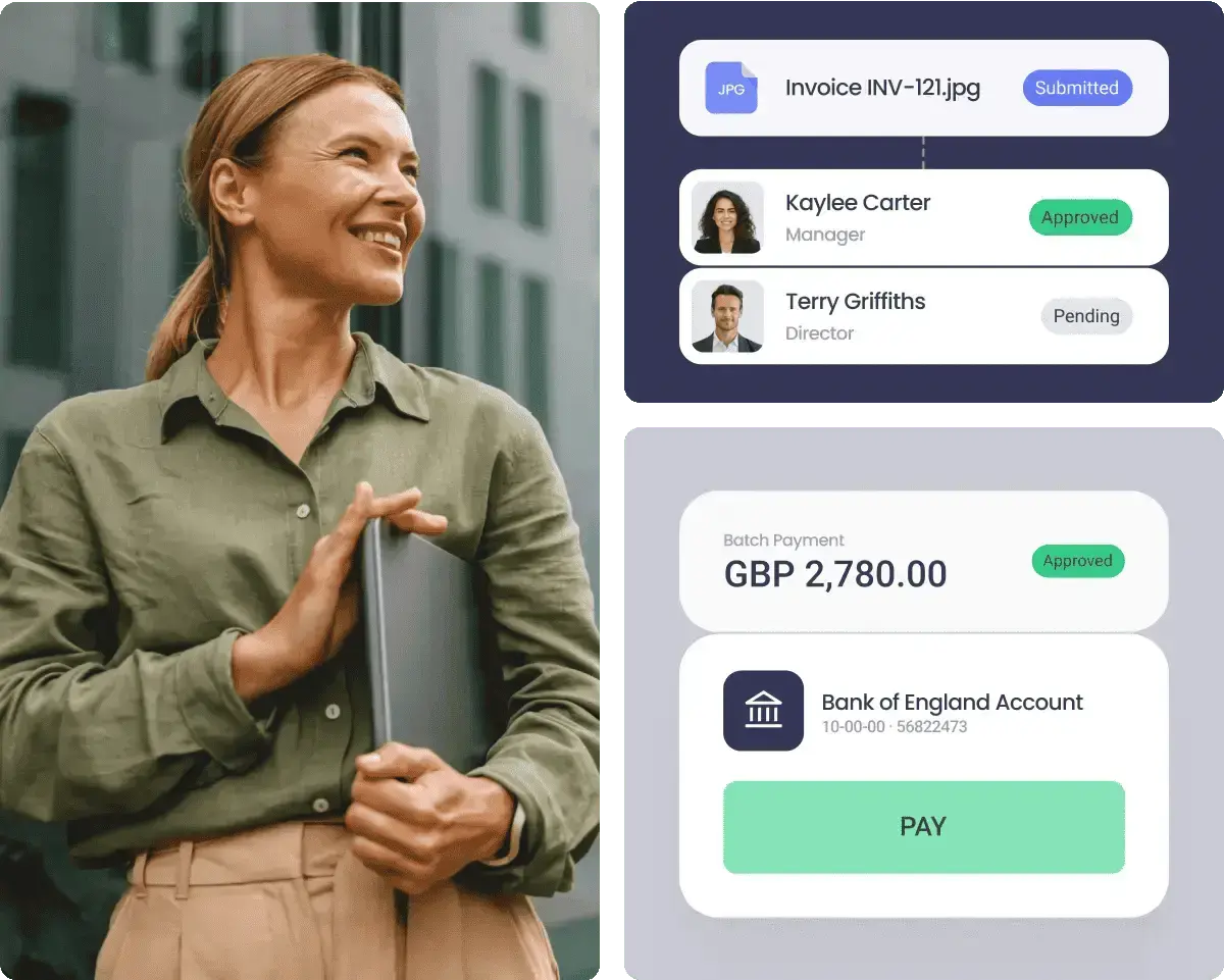 In the UK, pay bills directly from the app using our ApprovalMax Pay feature, enabled by open banking technology to pre-authorised suppliers.